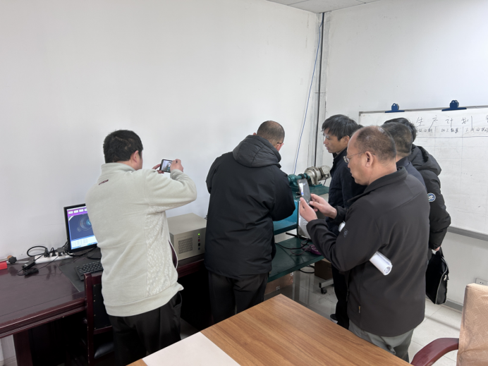 技術(shù)人員向中石化考察團(tuán)介紹螺紋缺陷檢測設(shè)備